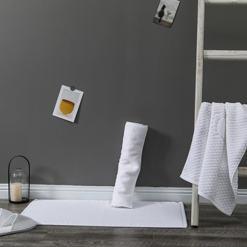 In hotels: Hotel bath mats are essential in hotel bathrooms. Their softness and absorbency keep the floor dry. Placed beside bathtubs or showers, they offer a comfortable stepping surface for guests, enhancing the overall bathroom experience and adding a touch of comfort to guests' stays.
