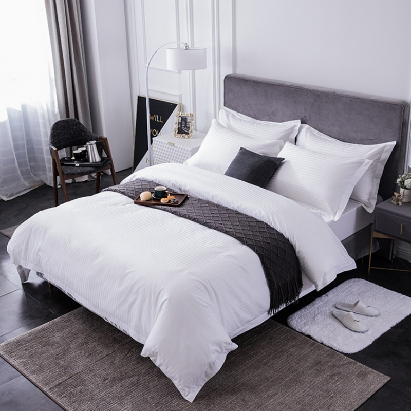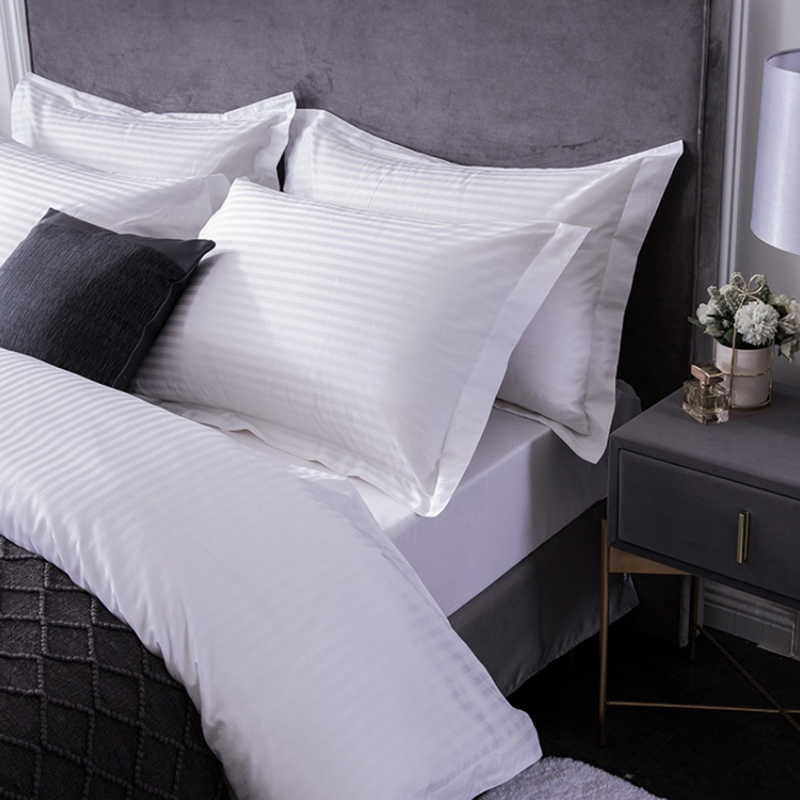 Transform your mid-to-high-end hotel rooms with the EASTON 4-piece hotel bedding set (Model: ES40001.03)—a perfect blend of luxury and practicality. Made from 100% cotton with a 300T thread count and 1cm stripe pattern, these white hotel bed linen sets are designed for busy hospitality operations while delivering a serene, premium sleep experience. Durable, easy to care for, and fully customizable, they're the top choice for hotels, resorts, and guesthouses aiming to impress guests.
