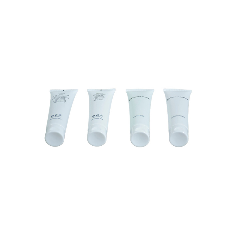 The soft white tube with a white flip cap gives an elegant look. Its 40ML capacity is convenient for short stays. The design is both practical and aesthetically pleasing. It's easy to hold and use, fitting well in hotel bathrooms and adding a touch of sophistication.
