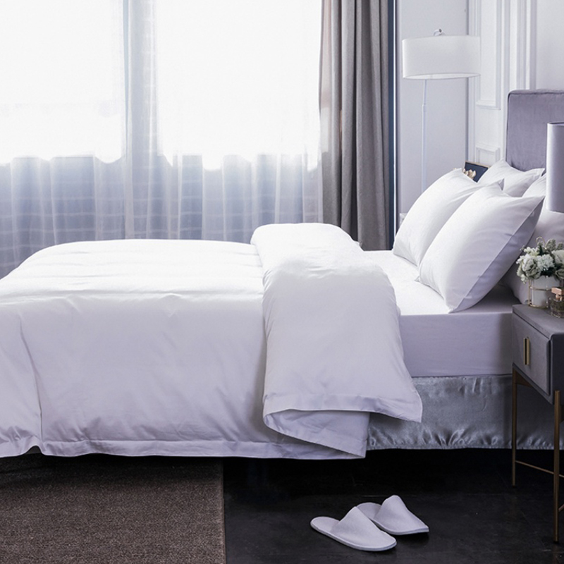 The set includes 1 flat or fitted sheet, 1 duvet cover, and 2 pillow covers—covering all bedding needs for hotel rooms. The sheet features 1cm hemming on all sides to prevent fraying, while the duvet cover has a center-opening bottom (with 5cm trimming omitted on three sides) for easy insertion. The pillow covers boast a 15cm overlap at the bottom, ensuring pillows stay securely in place.