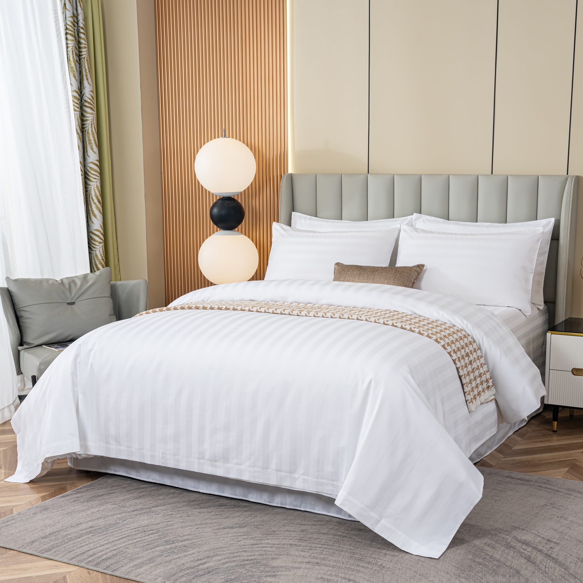 As a cornerstone of five-star accommodations, 300TC Cotton Sateen offers a unique canvas. Its inherent "shimmer" and fluid drape provide a foundation that, when paired correctly with decorative accents, can transform a standard room into a curated sanctuary.