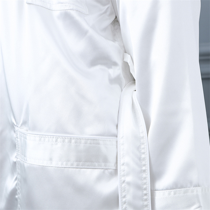 The fabric undergoes processing to enhance texture and absorbency. Sewing assembles components (collar, sleeves, pockets), followed by precise cutting to ensure consistent sizing. Dyeing achieves the classic white color (or custom hues) with fade-resistant dyes.
