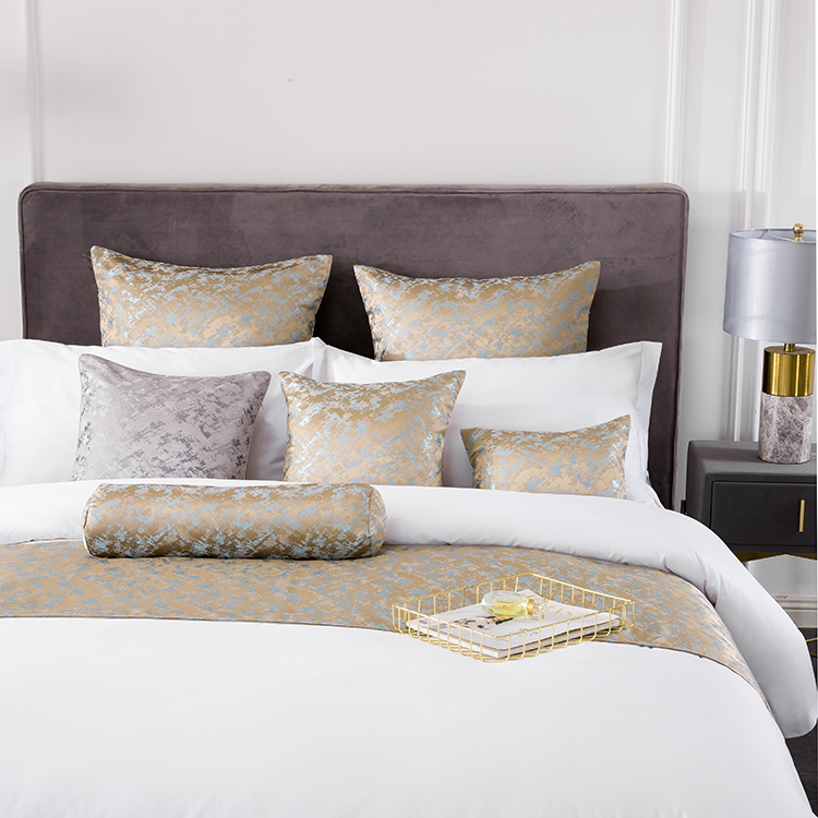 These bed runners and cushions add a polished, welcoming touch to guest rooms.